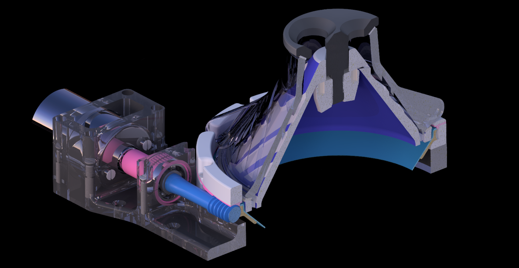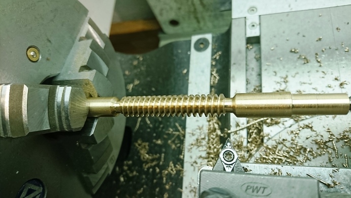 | An early iteration with 3D-printed worm. The plastic worm heated up too quickly (low thermal capacitance and conductance) and was not stiff enough to avoid skipping. I added a reaction block to stiffen it, but the thermal problems were unavoidable. |