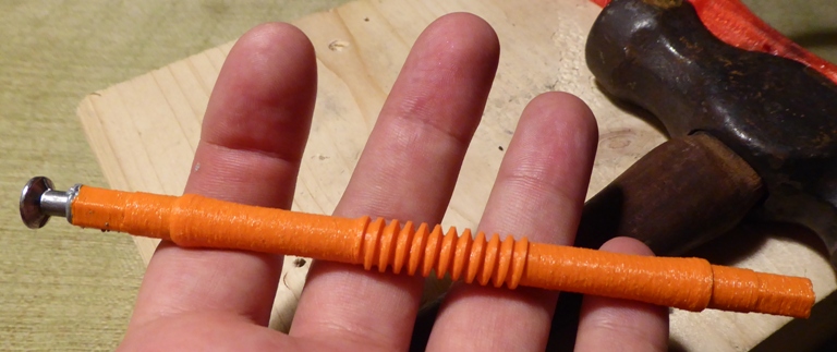 | I later added a steel core by pounding a nail coated in thermal paste into the hollowed shaft. That actually worked fairly well at low input power (< 30 W) but absolutely ate itself at 70 W. |
