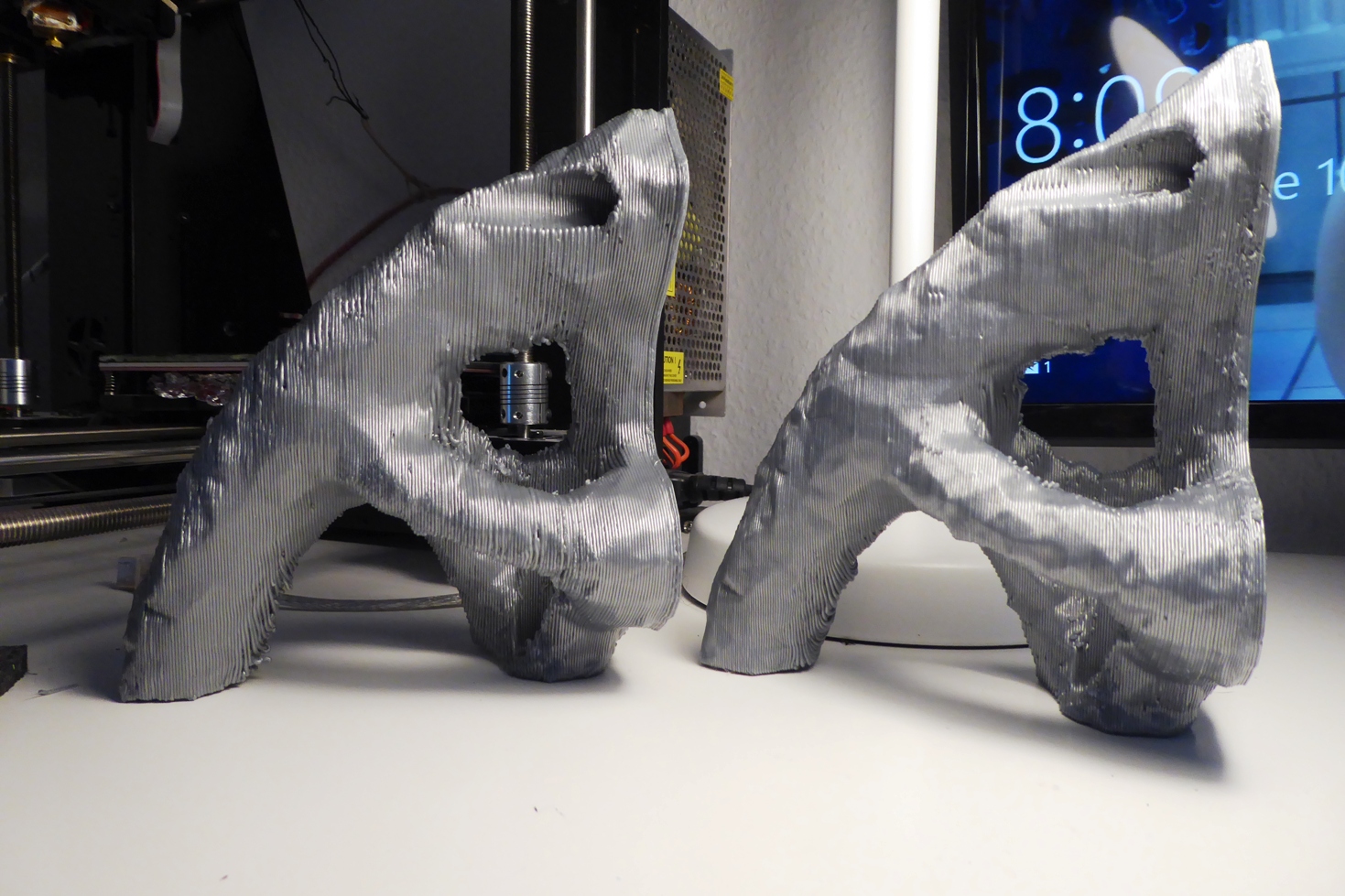 | I made some fun topology-optimized shelf holders. Here are a few candidates. |