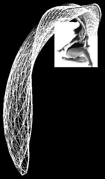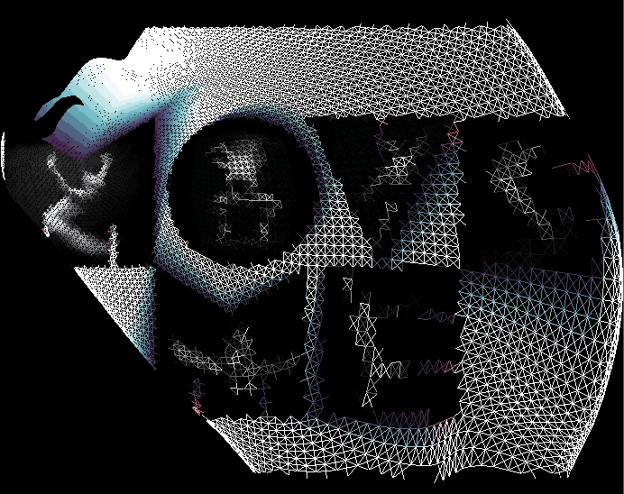This is a concept mask to overlay on SpringThing. You can see it's just a transparent GIF. I added code to use images as both masks and as coloration on the deformable mesh in SpringThing. It would be fun to take it a step further and code up a full-resolution image distorter.
